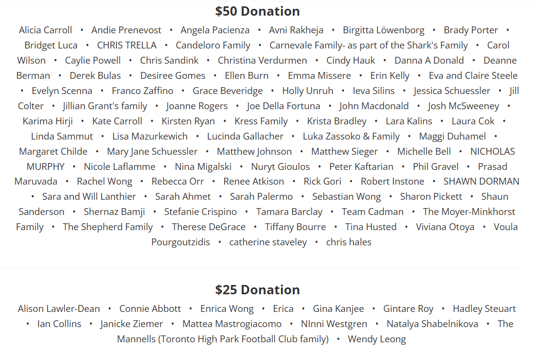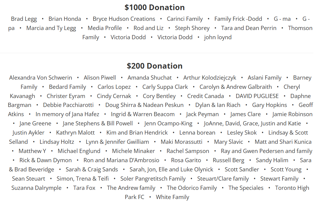 Team Anders Donor Wall